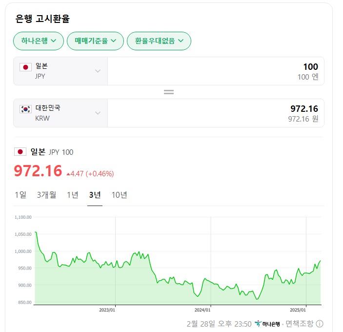 2023년부터 2025년까지 대한민국과 일본의 환율 변동은 각국의 경제 상황, 통화 정책, 대외 요인 등에 의해 영향을 받았습니다. 특히, 미국의 금리 정책과 글로벌 경제 불확실성이 두 나라의 화폐 가치에 큰 영향을 미쳤습니다. 향후에도 이러한 요인들을 면밀히 모니터링하고, 적절한 대응 전략을 수립하는 것이 중요합니다.