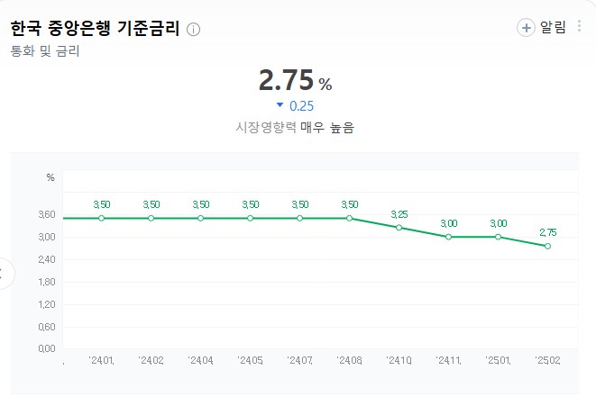 - 한국은행은 2025년 상반기 중 **기준금리를 2.75% → 2.5%**로 낮출 가능성이 있다는 전망이 있습니다.